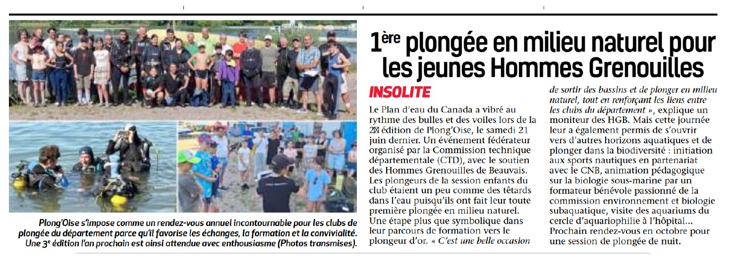 Retour sur la plongée organisée le 21 juin 2025 au plan d’eau du Canada. Cet évènement à donner lieu à un article dans l’Observateur …