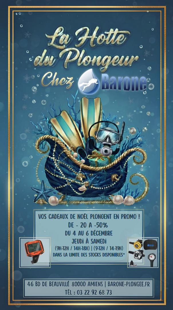 Message du Magasin Sarl Barone à Amiens : “La Hotte du Plongeur est arrivée chez Barone ! Cette année, le Père Noël a …