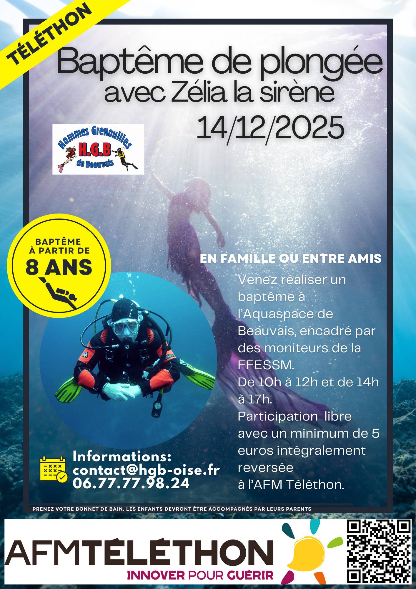 Un Baptême pour le Téléthon avec les HGB Les Hommes Grenouilles de Beauvais proposeront le Dimanche 14 décembre 2025 des …