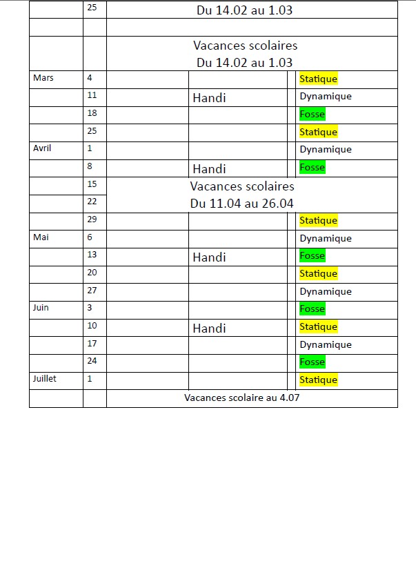 Vous trouverez ci-dessous le planning des mercredis pour la saison 2025-2026  pour la 1ere partie de l’année