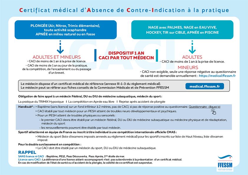 Nous vous proposons le modèle de la FFESSM à télécharger et imprimer avant d’aller voir votre médecin :